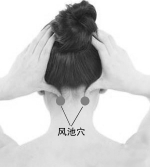 风池穴位于颈部,当枕骨之下,与风府穴相平,胸锁乳突肌与斜方肌上端之间的凹陷处。