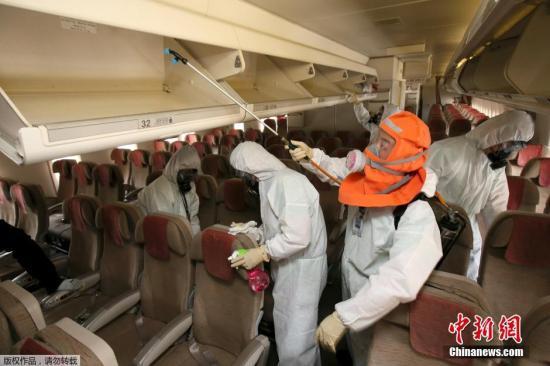 资料图:韩国MERS病毒蔓延,韩国对公共交通工具进行消毒。