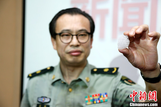 医生展示4D打印生物可降解材料填充物。中新社记者 张懿楠 摄
