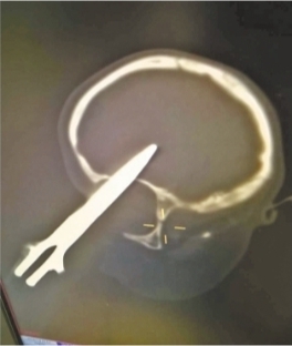 拍片检查显示,剪刀直插入孩子大脑 医院供图