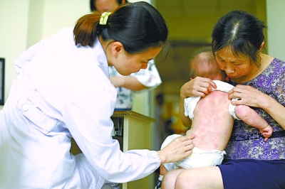 女孩小名叫茜茜(化名),家住硚口区,刚开始添加辅食不久,每次吃鸡蛋白就会过敏。上周六,妈妈李女士给她煮蛋黄小米粥,谁知茜茜吃完后就不停哭吵,身上也开始泛红,接着就起了满身的红疹。